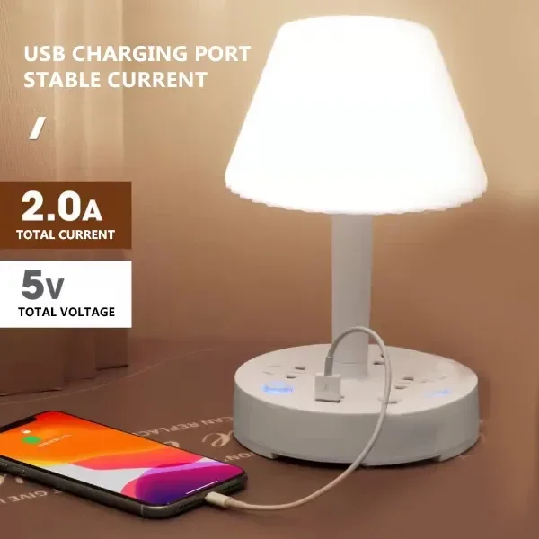 يوفر المصباح ثلاث مخرجات للكهرباء، مما يسمح لك بتوصيل معداتك الإلكترونية بسهولة وشحنها دون الحاجة إلى مقابس إضافية.